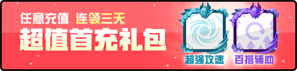 ① 新手首充礼包。充值消费任意金额,首日立即领取「传说级台风方块x1」,二段变身极限攻速,非常适合新手使用的输出型方块。次日及三日登录,可额外领取「铂金宝箱x1、钻石x100、金币x5000」!