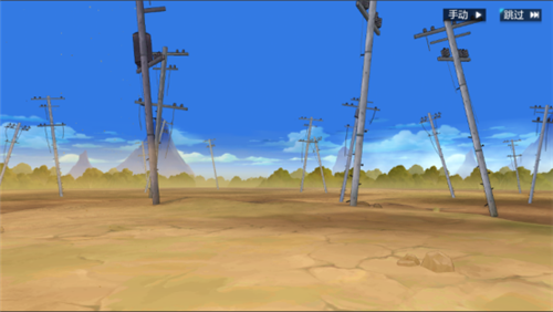 资料馆内沙漠电线杆场景,取景灵感来自动画中的比丘兽村庄附近,并顺应动画中瞭望山的设定,在场景中加入了零星的绿洲刻画