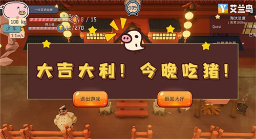 游戏简介:游戏分为两轮。第一轮玩家将扮演幼年猪,需抢夺食物来增加体重、速度、精力和体力值等属性;第二轮玩家将扮演成年猪,通过相互碰撞来决定去留,一旦被撞出猪圈就会被饲养员抓走。