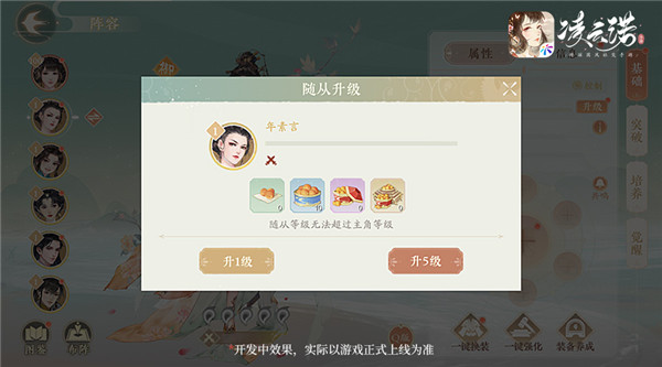 在通过拜帖邀请到随从名士们光临寒舍之后,君卿们便可以通过多种养成玩法进一步促进自己钟意随从角色的成长。消耗材料提升随从的等级与属性,觉醒角色解锁更多能力、技能,强化服饰、冠冕、饰品等装备让实力更进一步。在《凌云诺》中对一位角色的全心投入,还能通过无损继承来用以培养全新随从,为君卿们带来丰富的游戏乐趣的同时带来更加舒适的养成体验!